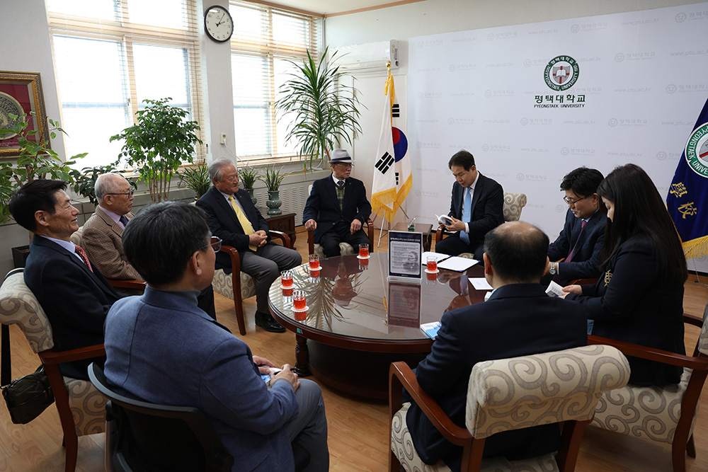 평택대학교는 지난 3월 23일(월), 한국국제기드온협회 평택캠프 방문단을 맞이하여 총장 접견실에서 차담의 시간을 가졌다. 이날 차담에는 평택대학교 이동현 총장을 비롯해 류원렬 교목실장, 김미숙 대외협력실장, 권평 피어선기념성경연구원장 등이 참석하였으며, 협회 측에서는 회장 김승관, 부회장 우재은, 신앙부장 황운용, 총무 하종석이 함께 자리하여 교류의 시간을 가졌다.